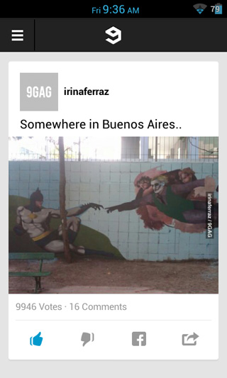 9GAG được phát triển phát triển như một ứng dụng giải trí với vô số ảnh vui, meme, ảnh cosplay, video…Người dùng có thể chia sẽ mọi thứ mình cảm thấy thú vị và nhận được phản hồi từ người dùng khắp nơi trên thế giới. Ngược lại chính người dùng cũng có thể nhận xét và trải nghiệm những điều thú vị bất ngờ khiến mình phải bật cười không ngừng nghĩ.